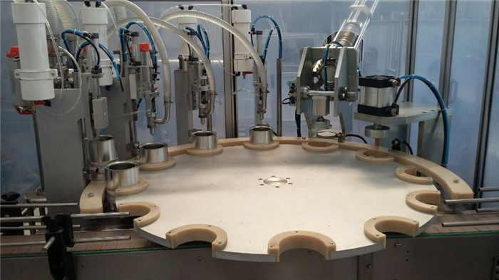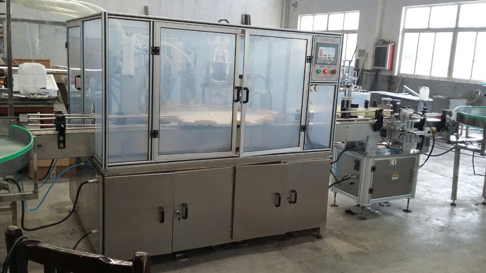 本機(jī)適用于馬口鐵罐的灌裝、壓蓋、貼標(biāo)工序、其性能完善、工作可靠、操作方便、維修容易。在各種食品、醫(yī)藥、化工、試劑、農(nóng)藥等的自動(dòng)包裝線水線上均得到廣泛應(yīng)用,是國內(nèi)目前理想的螺紋自動(dòng)旋轉(zhuǎn)式灌裝封口設(shè)備。