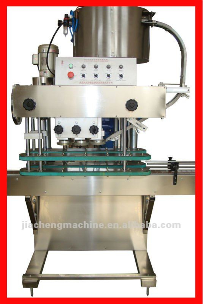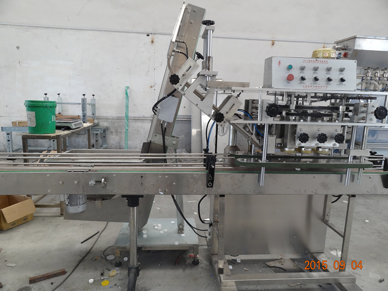 該機(jī)外形美觀大方、靈巧、旋蓋速度快,合格率高、可適用于食品、制藥、日化、農(nóng)藥、化妝品等行業(yè)的不同瓶形的旋蓋。四臺調(diào)速電機(jī)分別用于供蓋、夾瓶、傳送、旋蓋,機(jī)器自動(dòng)化程度高,穩(wěn)定性好,調(diào)節(jié)方便,更換瓶形或蓋時(shí)無須備件,只需作調(diào)整即可完成(如配上料機(jī),可進(jìn)行自動(dòng)將蓋子送到振動(dòng)盤里面)。