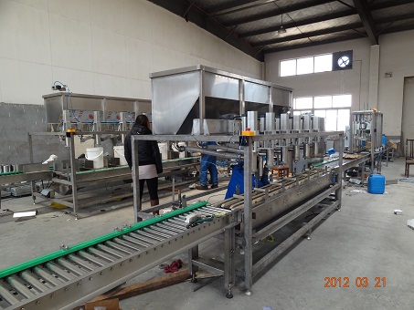Manual load pail—automatic transfer—6 head automatic filling—automatic sorting